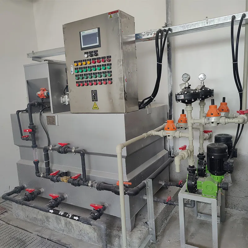 Оборудование разработано с учетом особенностей полимерных реагентов: плохая растворимость, склонность к образованию комков, быстрое застывание при длительном контакте с воздухом. Решает проблемы традиционного ручного приготовления и дозирования, такие как трудозатраты и неточная дозировка. Система автоматически готовит растворы полимерных флокулянтов посредством разбавления, перемешивания и дозирования. Управление осуществляется микроконтроллером, который передает данные на центральный пульт и получает команды включения/выключения. Местный электрошкаф оснащен переключателем ручной/автоматический режим для автоматического растворения и дозирования реагентов, что упрощает техническое обслуживание и ремонт.