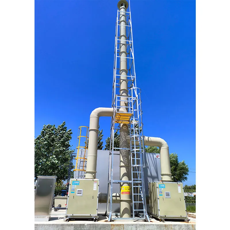 Биологическое оборудование для удаления запахов состоит из резервуара, биологического углеродного наполнителя (неорганического наполнителя), циркуляционного насоса, распылительного насоса и системы управления. Принцип работы заключается в использовании микроорганизмов, прикрепленных к наполнителю в реакторе, которые в процессе метаболизма разлагают загрязняющие вещества в газах-запахах в простые неорганические соединения и цитоплазму микроорганизмов. Метаболиты и стареющие биопленки могут быть своевременно удалены циркулирующей жидкостью, что эффективно устраняет зловонные газы, содержащиеся в загрязняющих веществах (такие как сероводород, аммиак и т. д.). При этом сера в зловонных загрязняющих веществах превращается в стабильные сульфаты в окружающей среде, а азот в загрязняющих веществах превращается в стабильные нитраты или азот, а летучие органические загрязнители разлагаются на CO2, H2O и другие простые неорганические соединения.