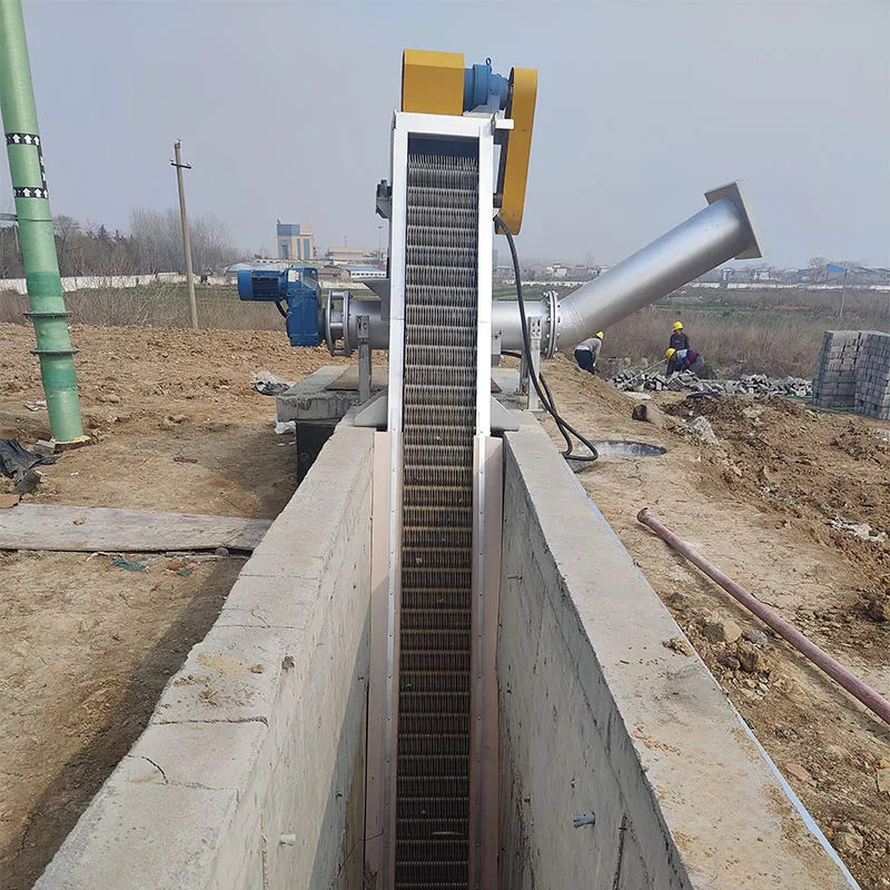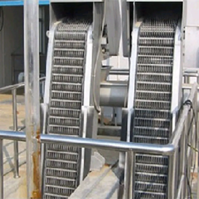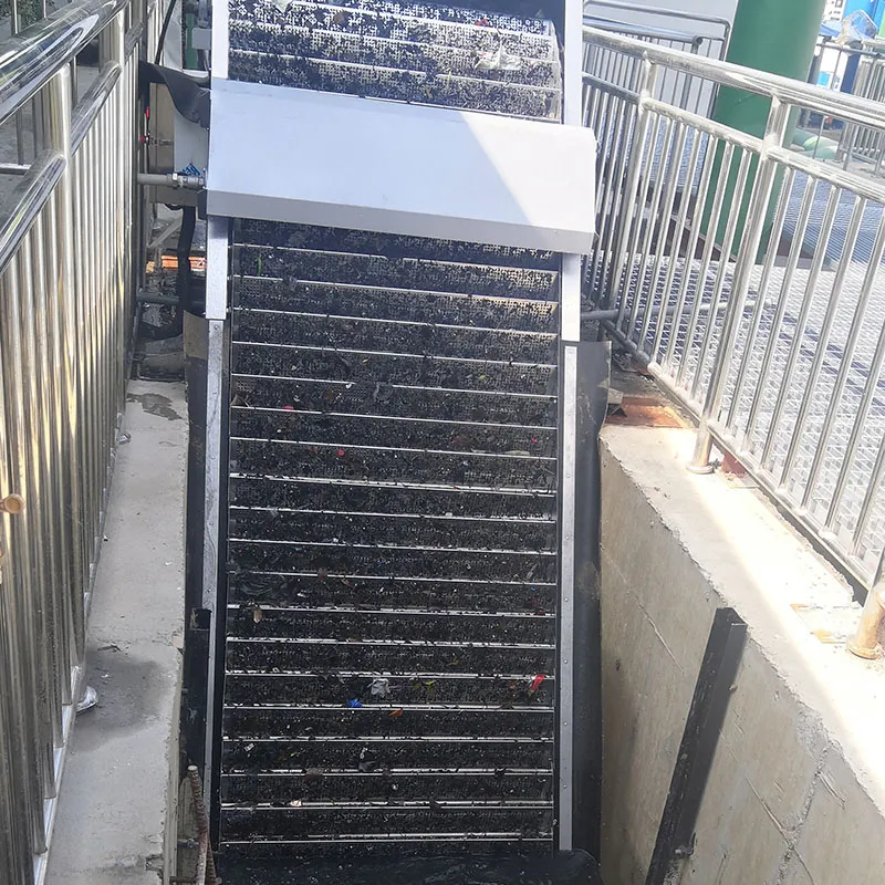 Поворотный решеткий очиститель оснащен уникальным механизмом удаления шлама, собранным в виде вращающейся решетчатой цепи. Приводящийся в действие мотор-редуктором, механизм удаления шлама совершает вращательное движение против потока воды, осуществляя сбор плавающих загрязнений. Устройство эффективно удаляет плавающие вещества, растительные остатки, волокна, резино-пластиковые и другие твердые отходы из сточных вод с эффективностью очистки более 95%.